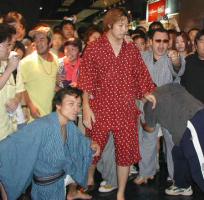 | 試合後の乱闘。 | 粋な格好の二瓶組ご一行。 |