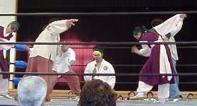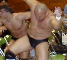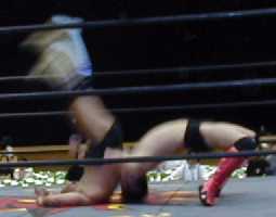 | 今日のアルカンヘルは、「シィー」連発。応える観客(一部)。最後は、SHINOBIの勝ち。これで2vs2。決着は明日の長崎に持ち越し。 |
