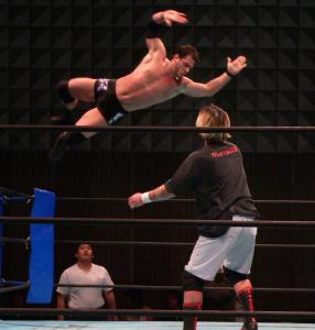 | フィニッシュはこんな風にジョーがMIYAWAKIをトップロープから落としてフォール勝ち。 |